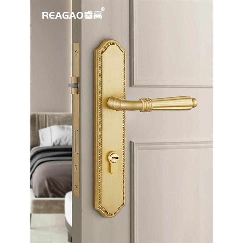 睿高全铜门锁室内家用卧s室静音欧式 房门 大门木门锁具通用型美式