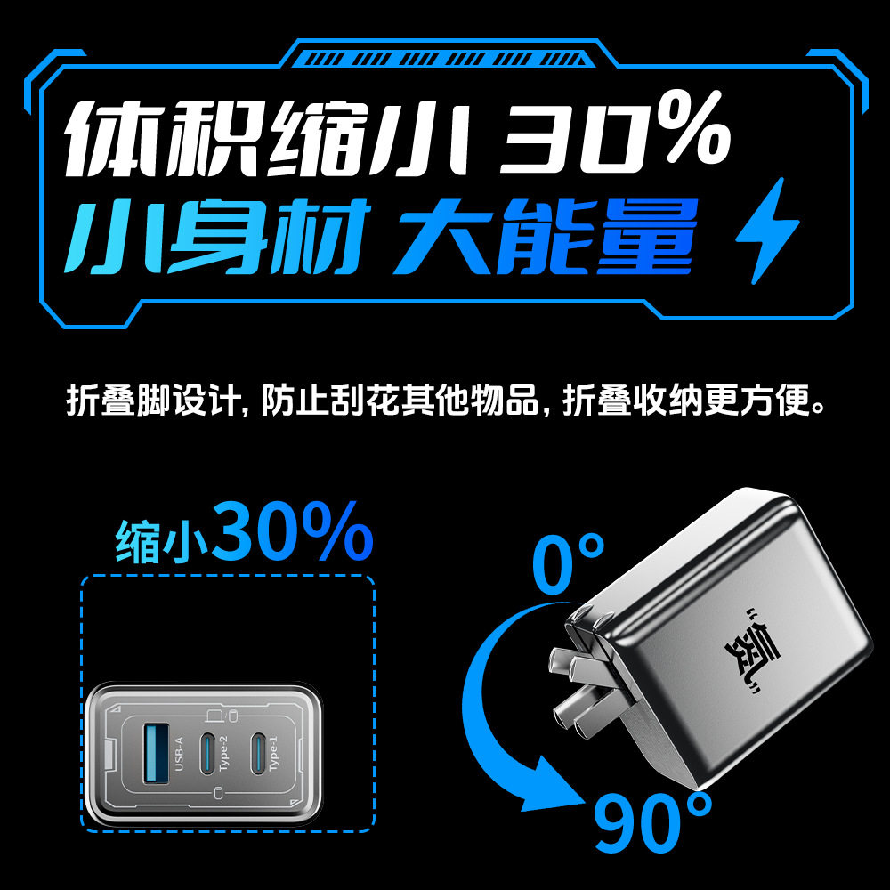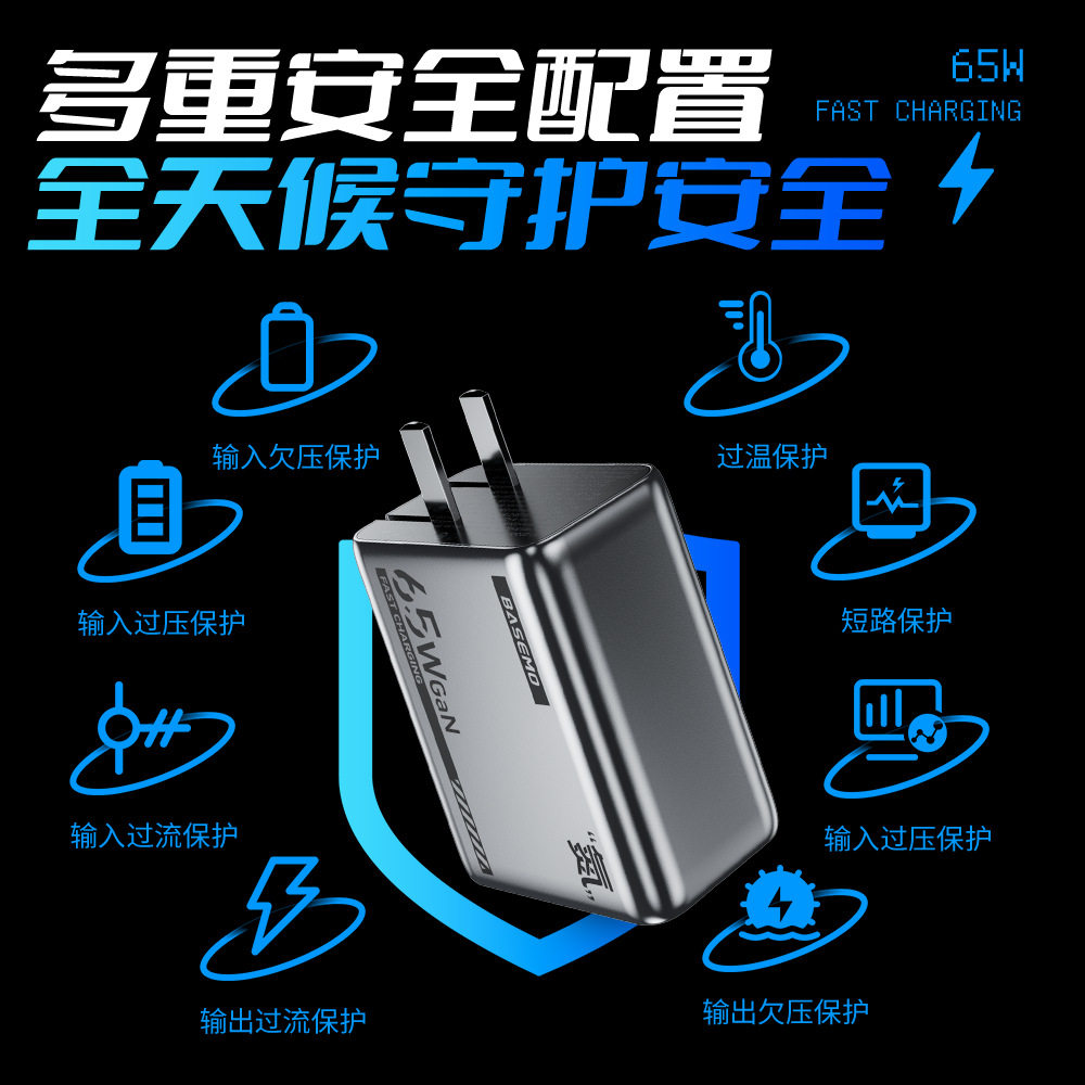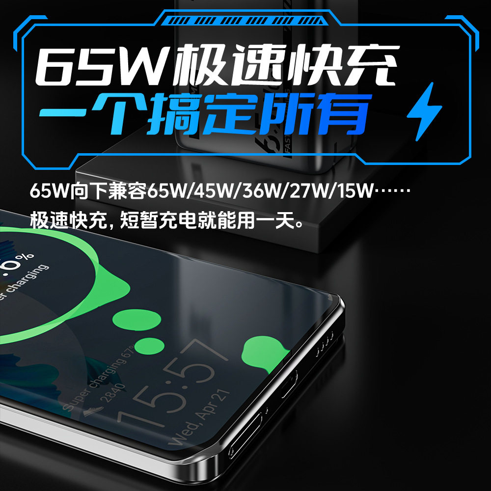新款 倍魔65W氮化镓机甲充电器超级快充适用苹果华为安卓多口PD充电头.