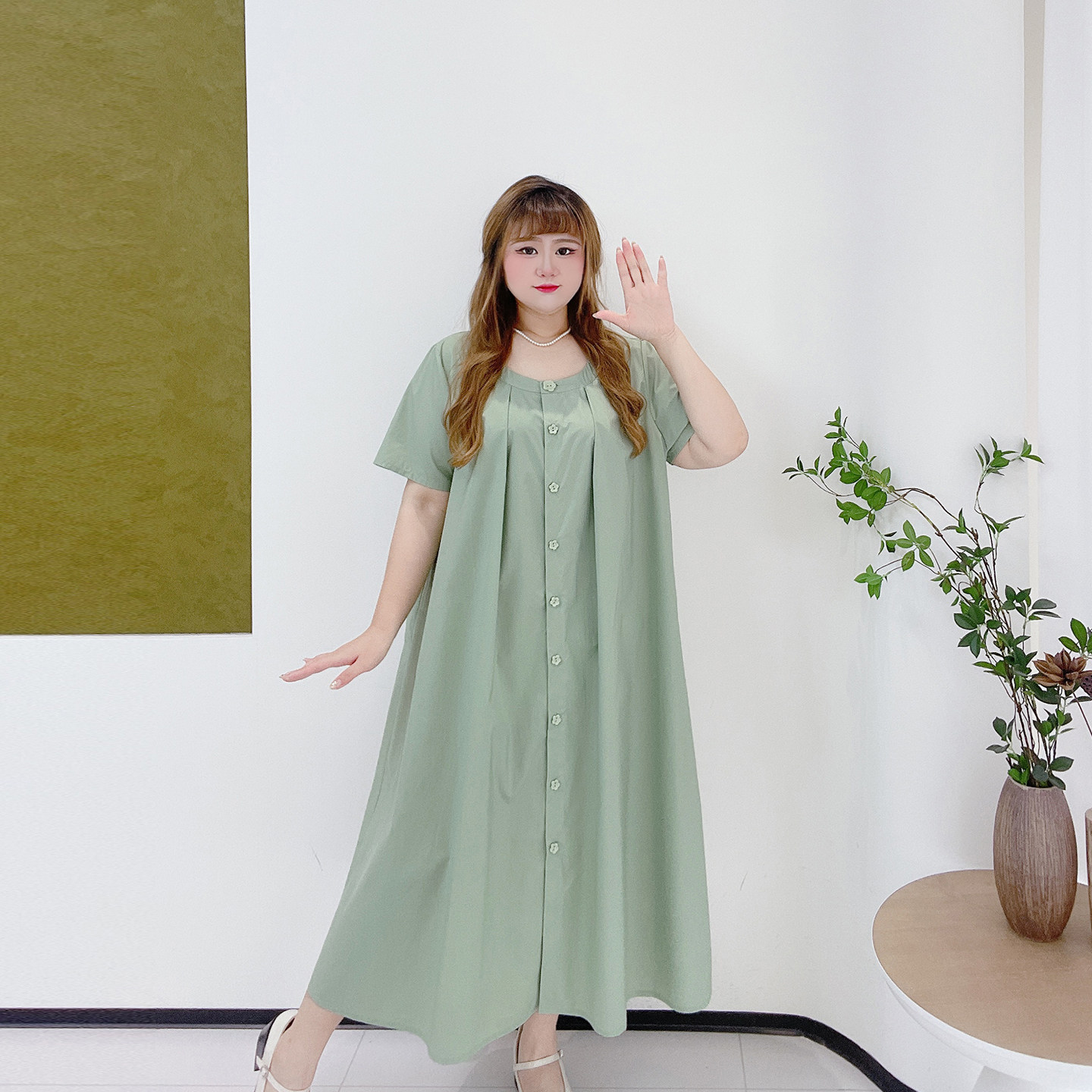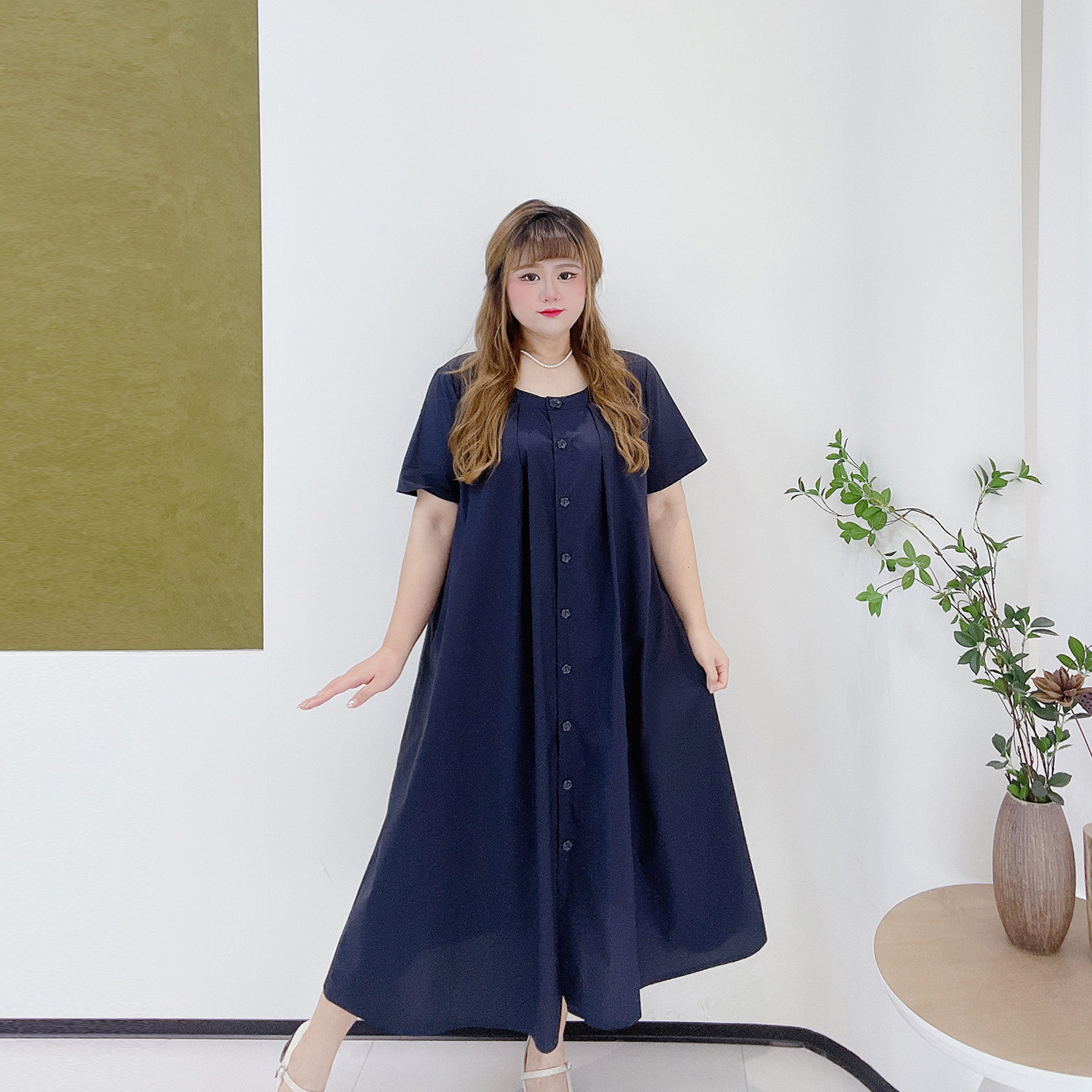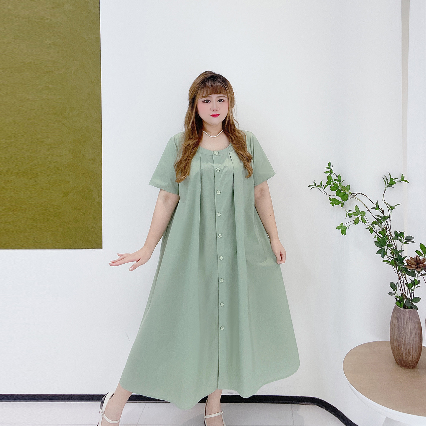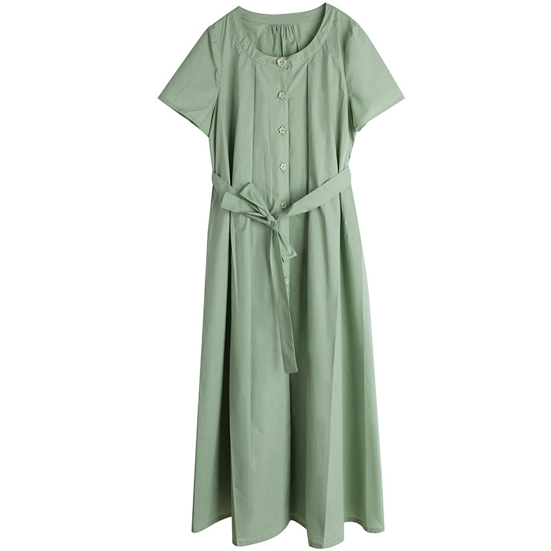 夏腰带显瘦系扣长裙 女装 清冷风气质长款 遮肉连衣裙胖仙女莹莹大码