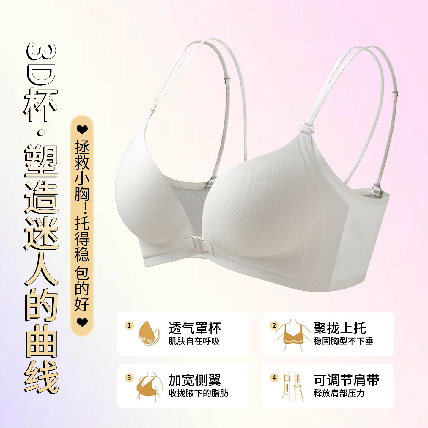 前扣小胸聚拢内衣女收副乳防下垂细肩带性感美背2025新爆款 文胸罩