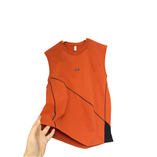 夏季 外贸男装 清凉透气休闲运动百搭背心T恤 明线设计 自留推荐