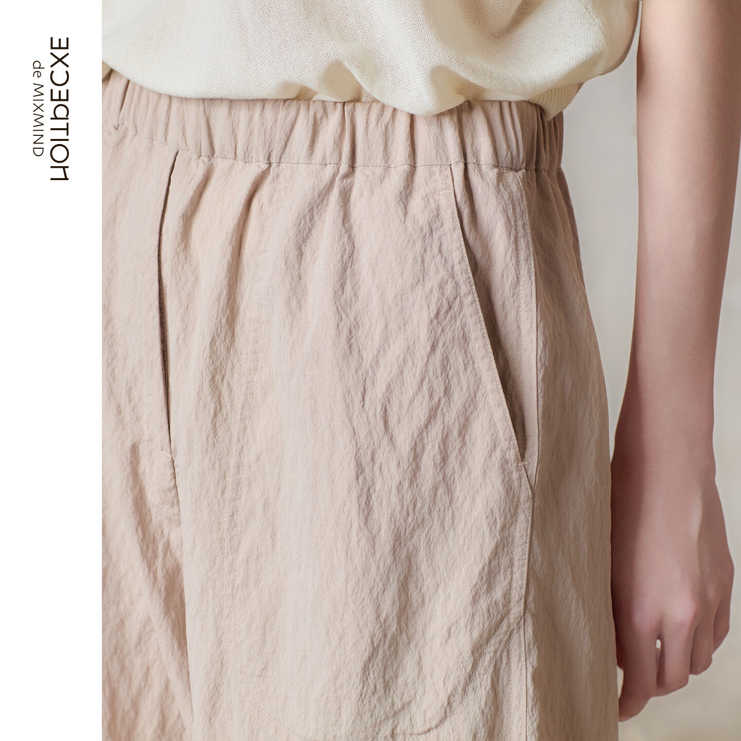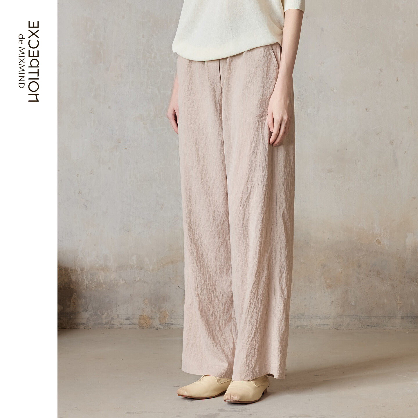 透气阔腿裤 桑蚕丝抽绳直筒休闲裤 中式 EXCEPTION例外女装