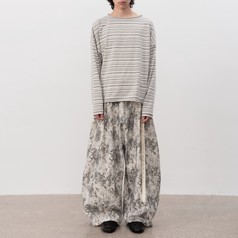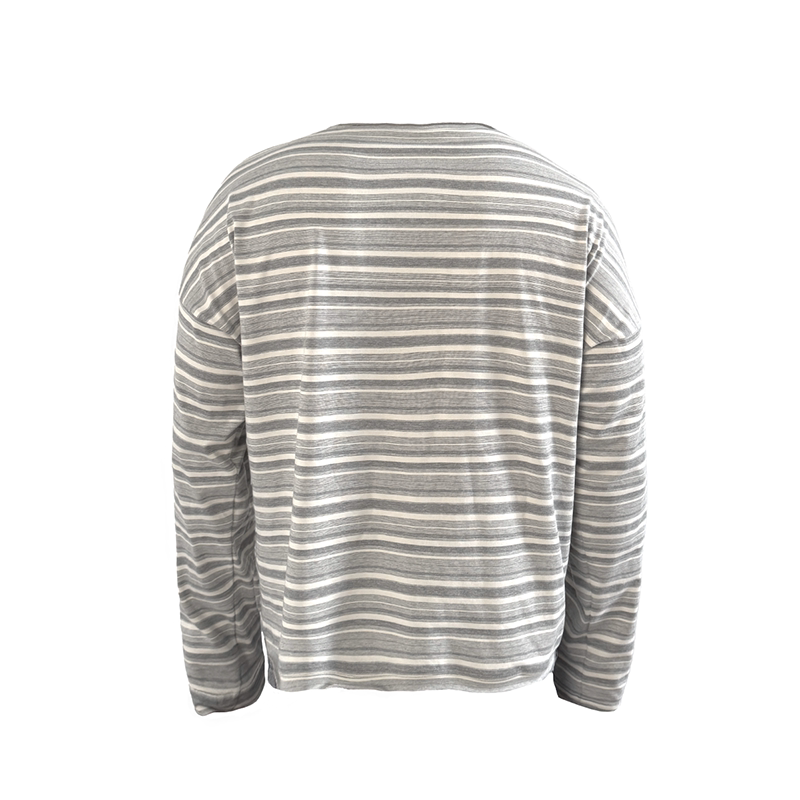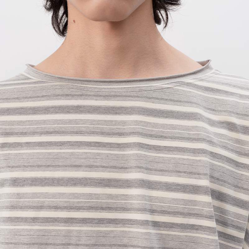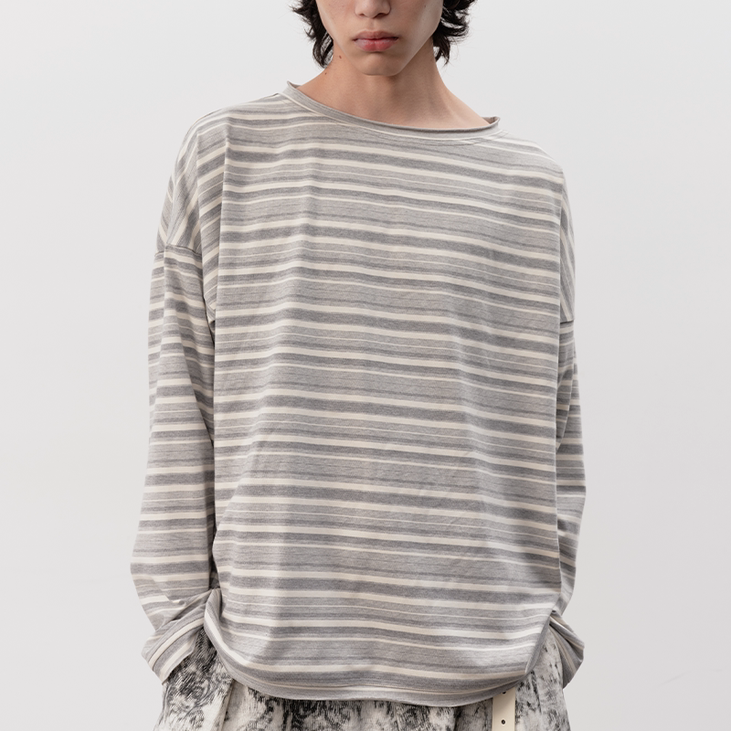 大领口落肩 JCAESAR 灰白色条纹卷边长袖 SLEEVE 慵懒舒适 LONG