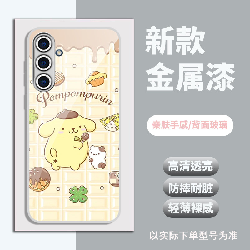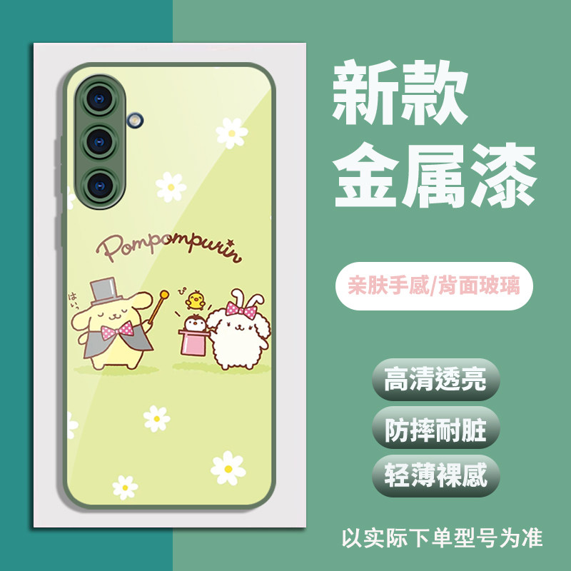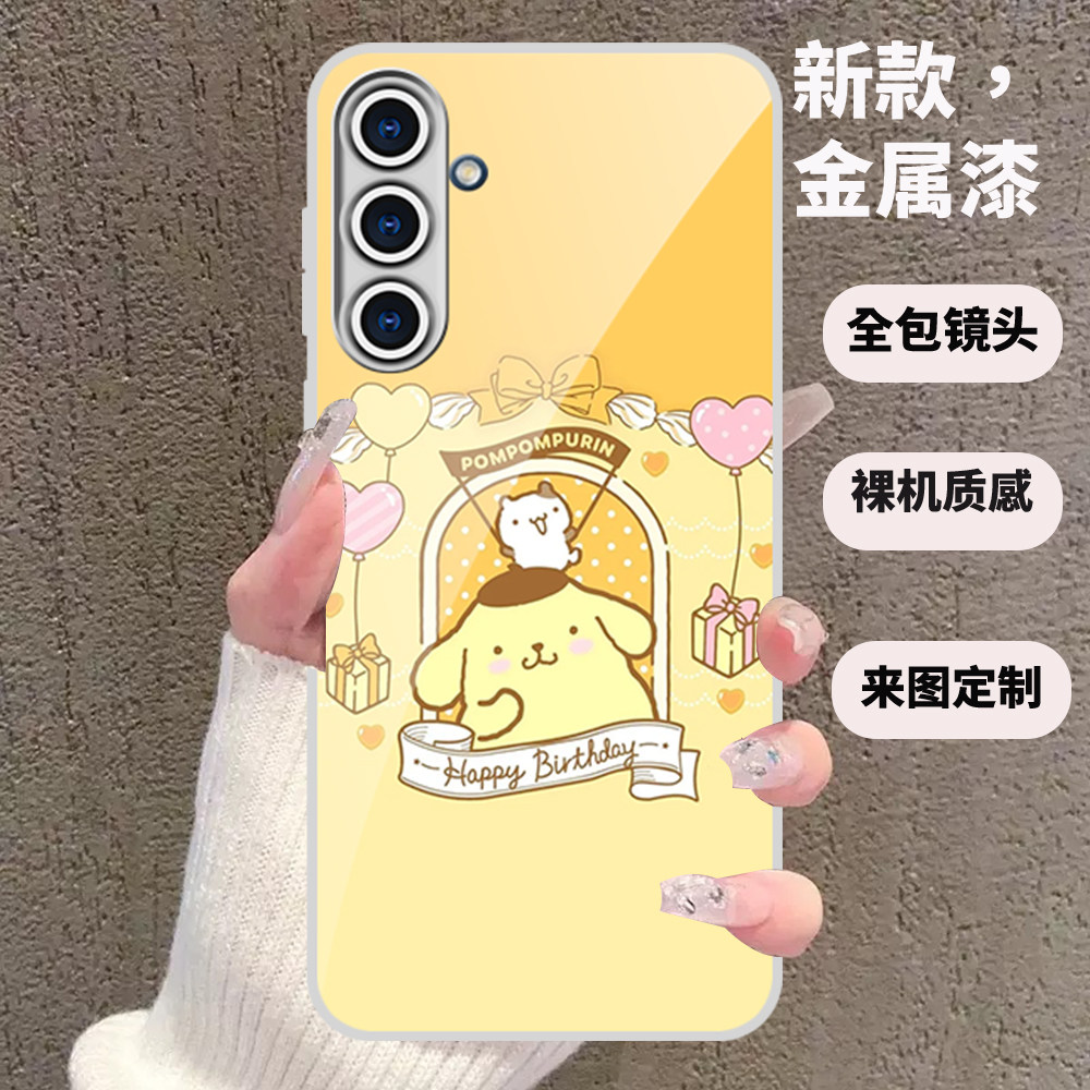 A25 来图订制 A52 可爱A14 A54 A53 A13 A34 全包A33 A35 布丁狗金属漆玻璃壳适用三星A56 A42 A16 个性