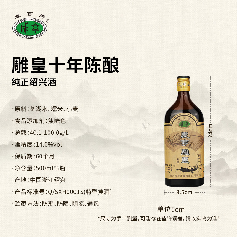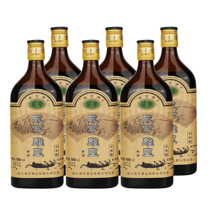 咸亨雕皇十年绍兴黄酒500ml 6瓶14度半甜型糯米花雕酒官方旗舰店