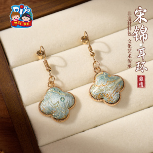 重阳节非遗宋锦耳环手工diy耳坠耳饰中式 首饰品儿童材料团建活动