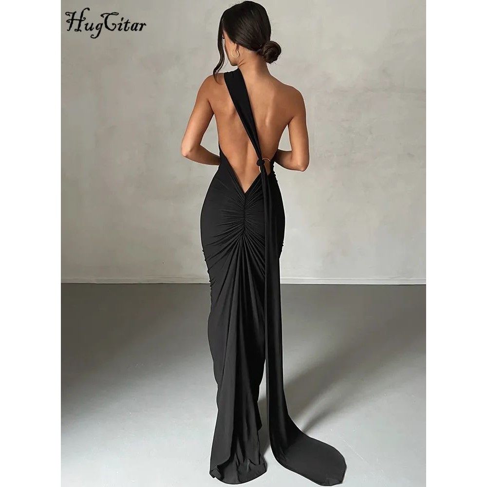 Backless Shoulder Adjustable Scarf Ruched Hugcitar Loop One