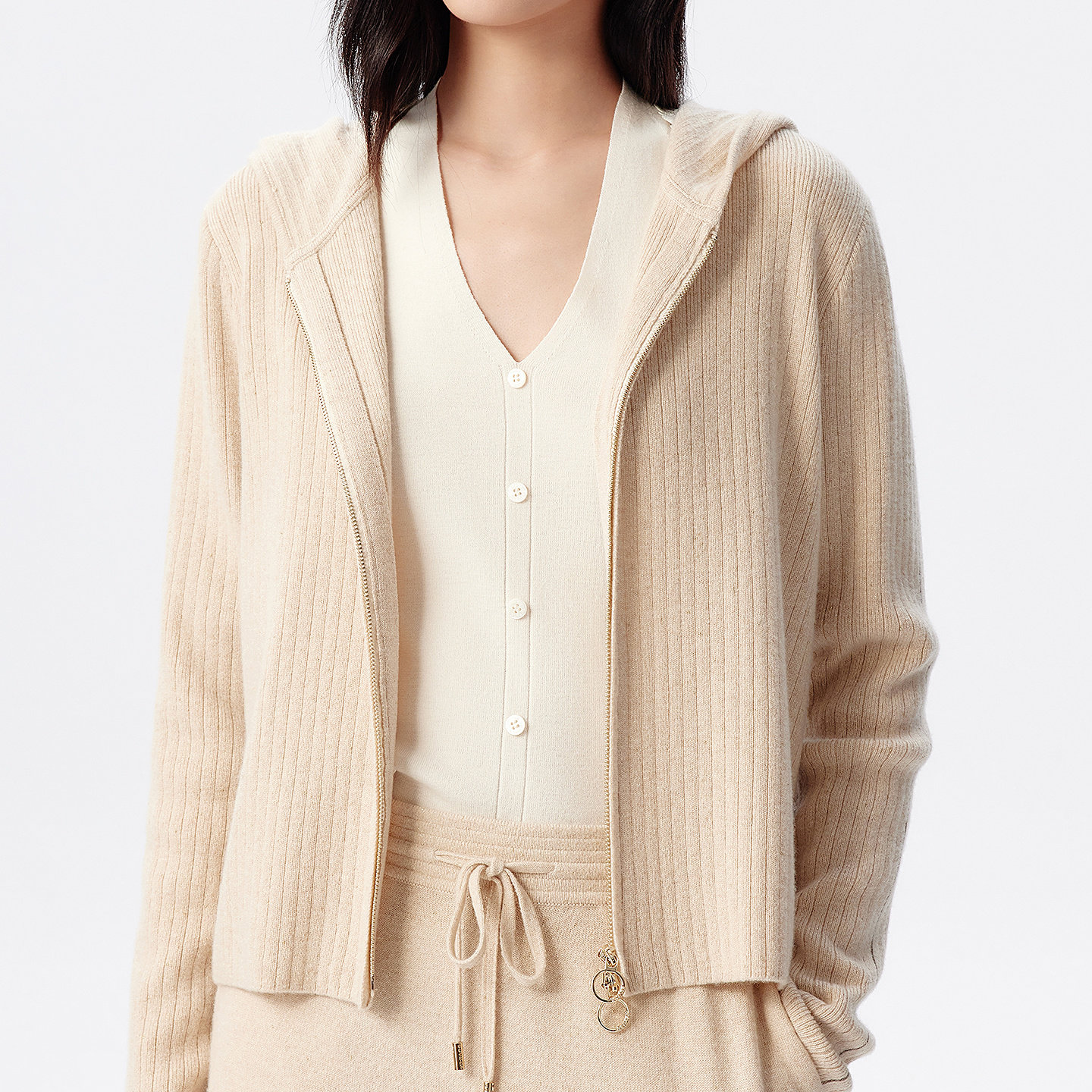 连帽拉链衫 VGRASS25秋冬金豆羊毛混纺针织开衫 女 WISH系列
