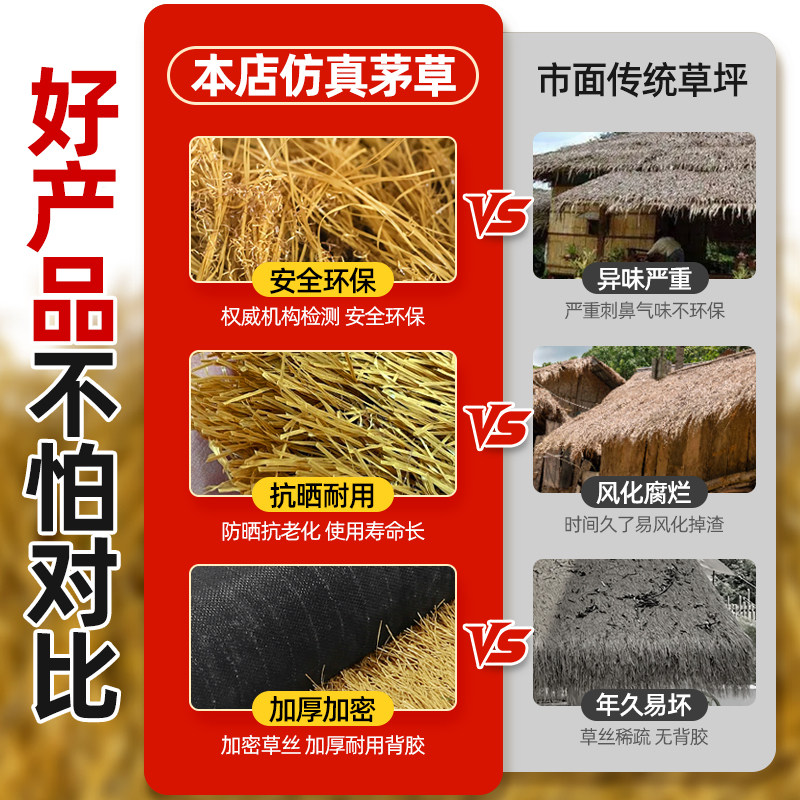 青亦仿真茅草屋顶人造稻草景区装 饰凉亭假毛草木屋塑料屋檐草棚顶