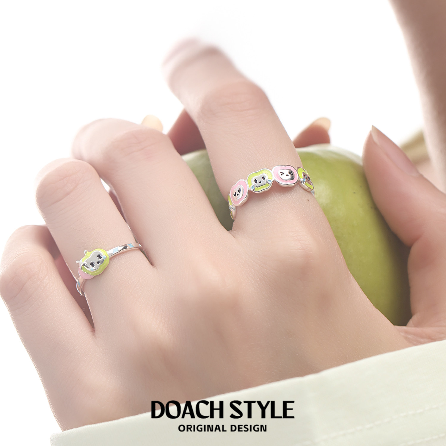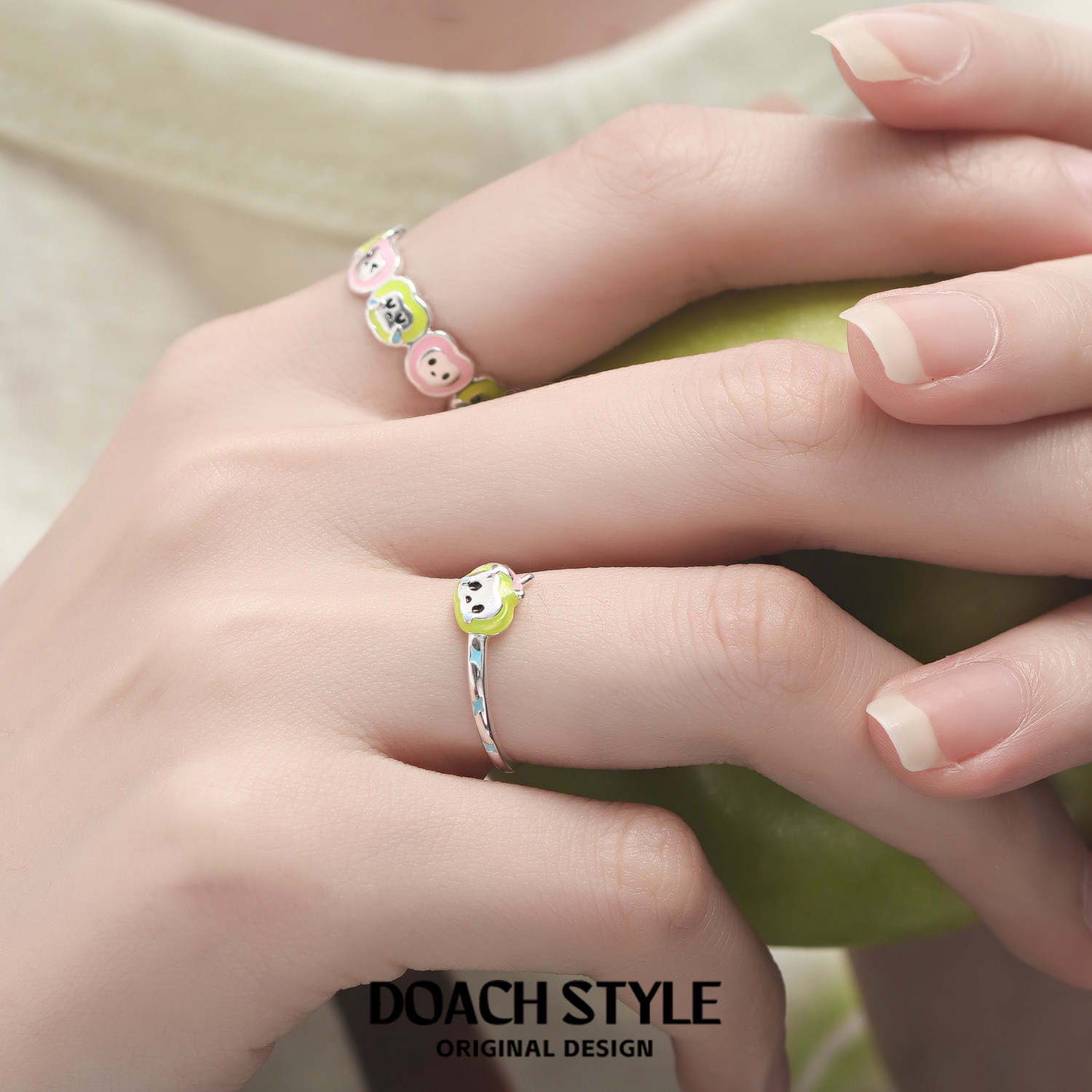 巷南925纯银施家珍珠戒指叠戴素圈指环小众高级女轻奢串珠食指戒