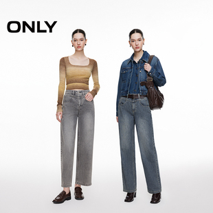 海王日记A字原牛个性 硬挺激光烧花提花拼接直筒显高牛仔裤