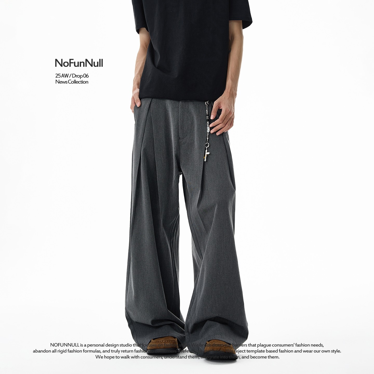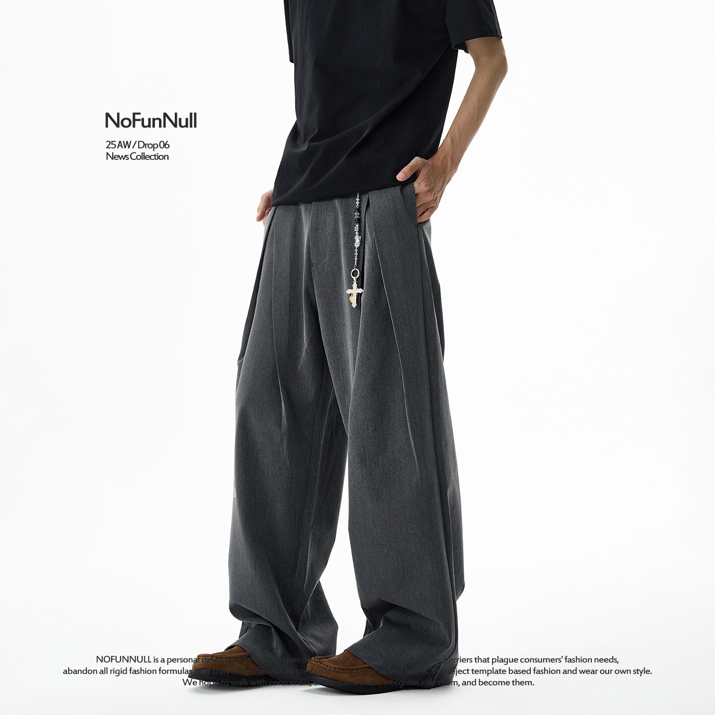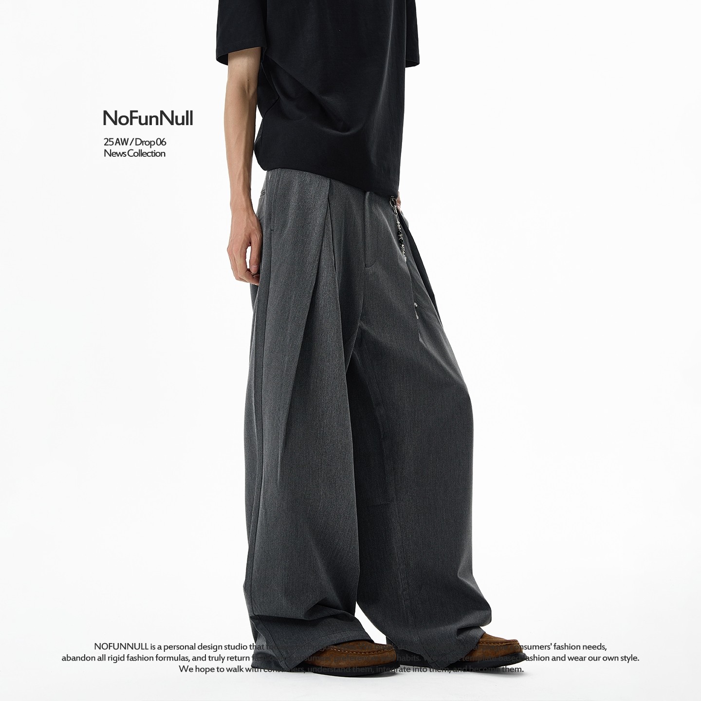男女高级感直筒休闲裤 cleanfit设计感双褶廓形西裤 美式 NOFUNNULL