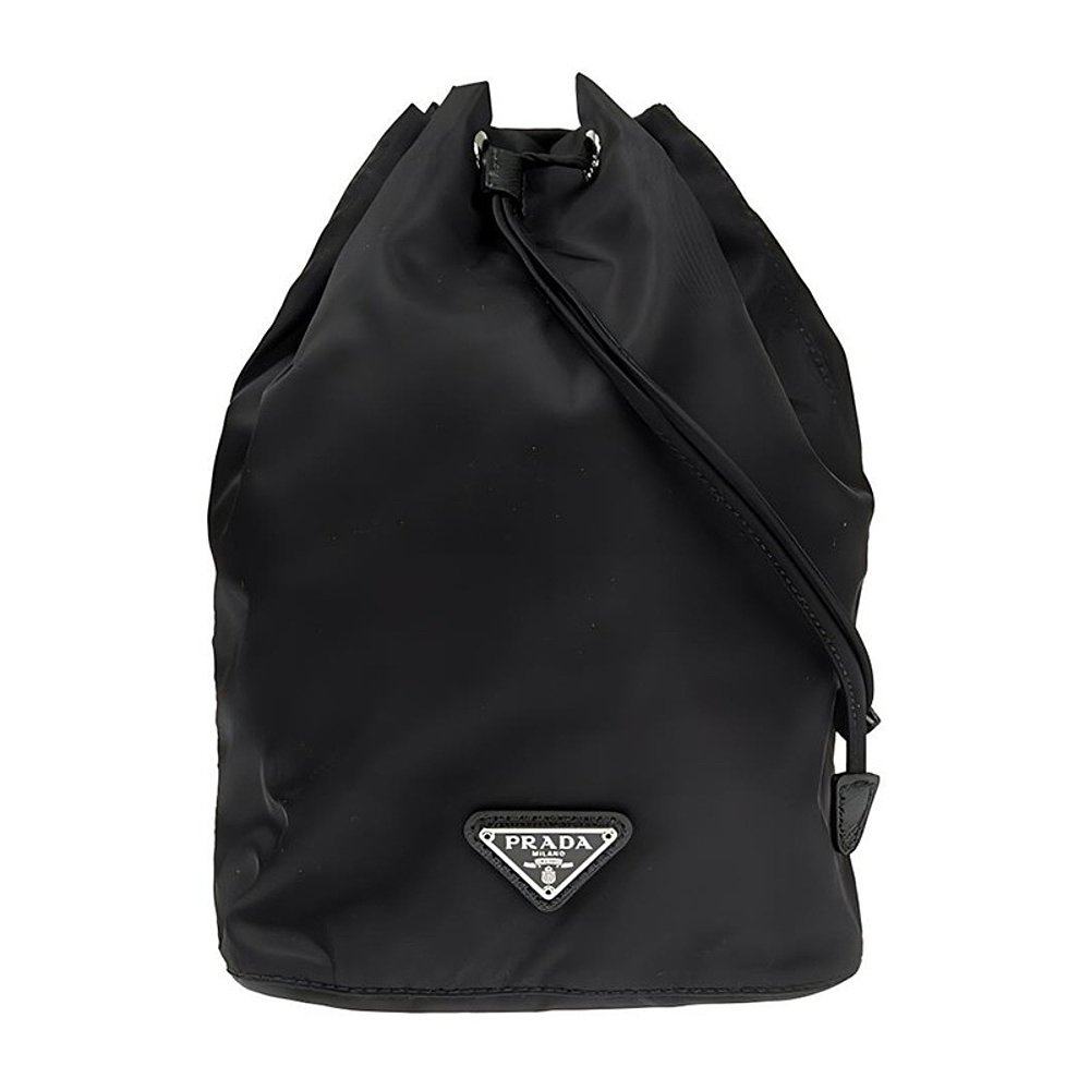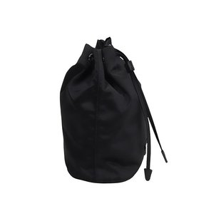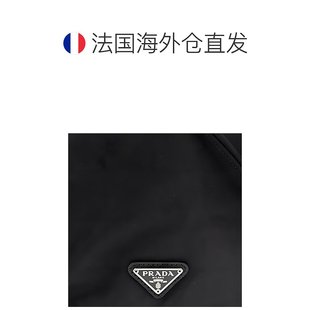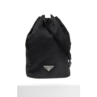 自营欧洲直邮Prada 男女通用黑色尼龙徽标抽绳小号水桶手 普拉达