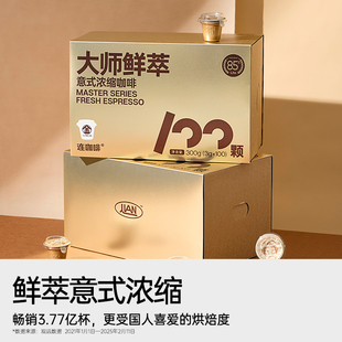 连咖啡100颗鲜萃意式 黑咖85%深烘焙 浓缩黑咖啡速溶咖啡粉3g小罐装