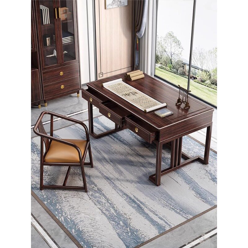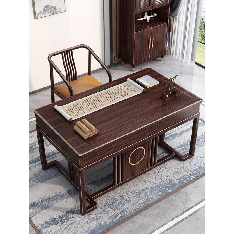新中式 实木书桌书柜组合书法桌办公桌紫金檀木书画家用电脑桌书房