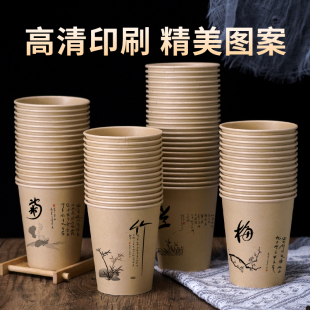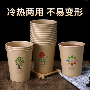 一次性杯子纸杯本色家用商用奶茶杯整箱批发加硬饮水功夫茶食品级
