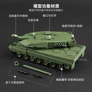 麦思迪1 甲车Tank 64豹2A6主战坦克合金仿真车模收藏模型Leopard装