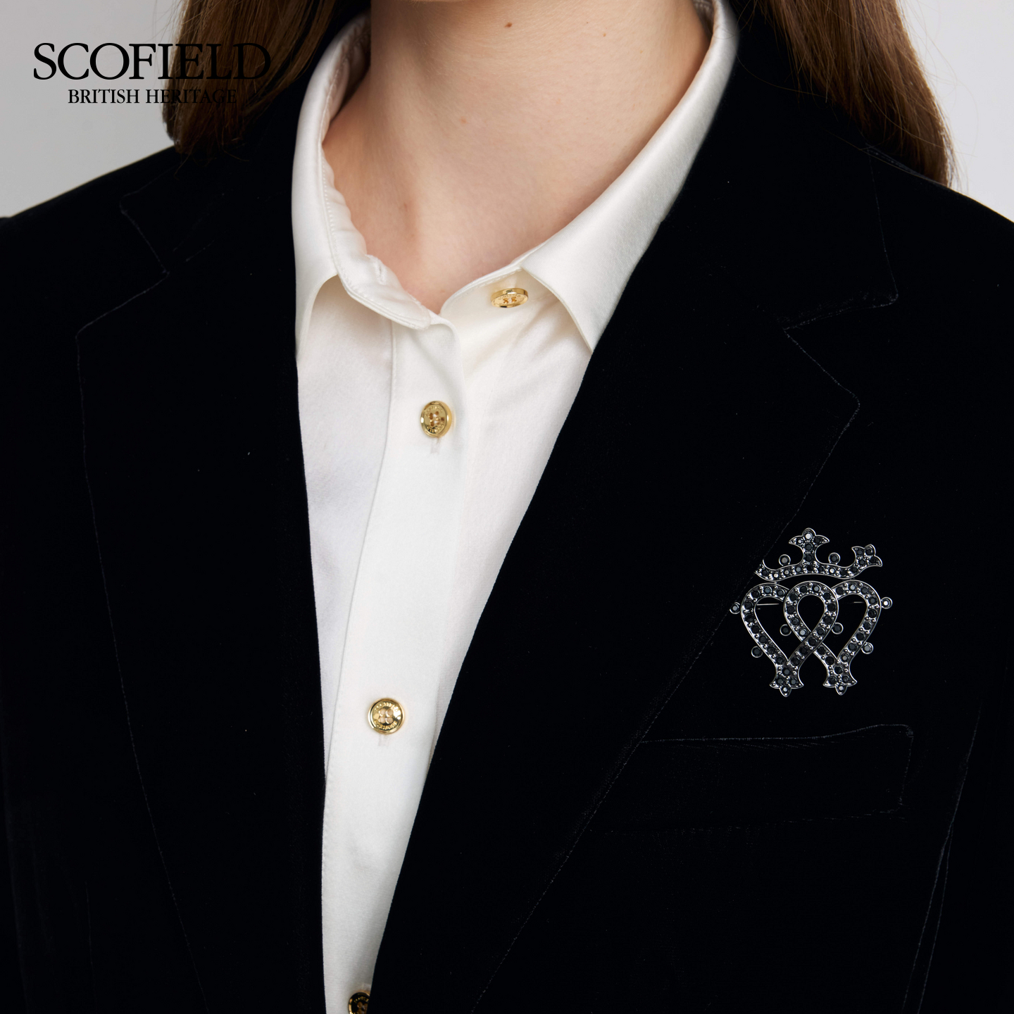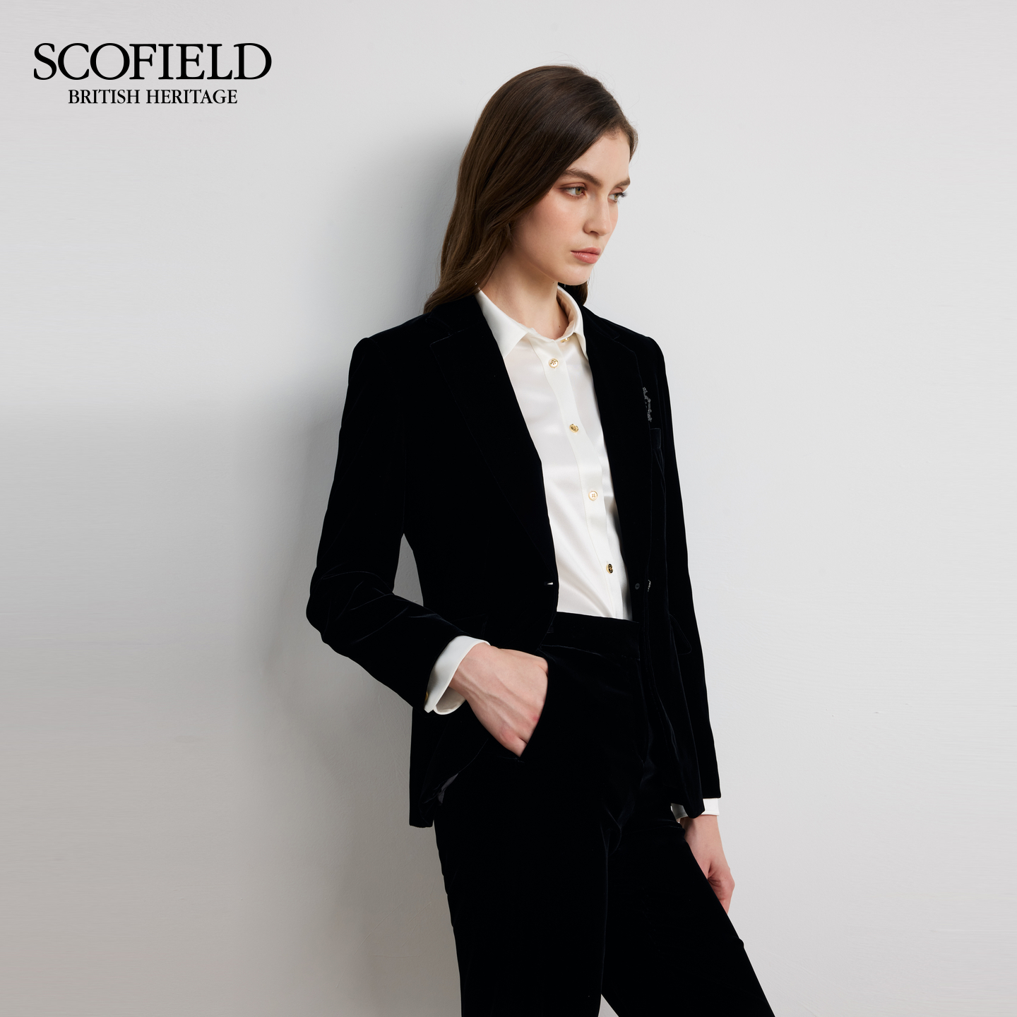 新品 外套挺括肩线微收腰2025冬季 复古丝绒单粒扣西装 Scofield女装