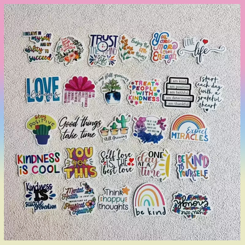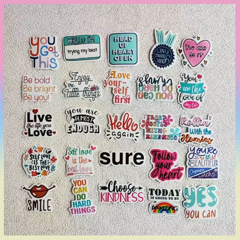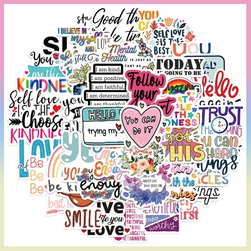 53张励志语录贴纸英文短句学生中高考加油努力学习正能量文化墙激励治愈装 饰防水贴纸手帐本水杯粘贴标签