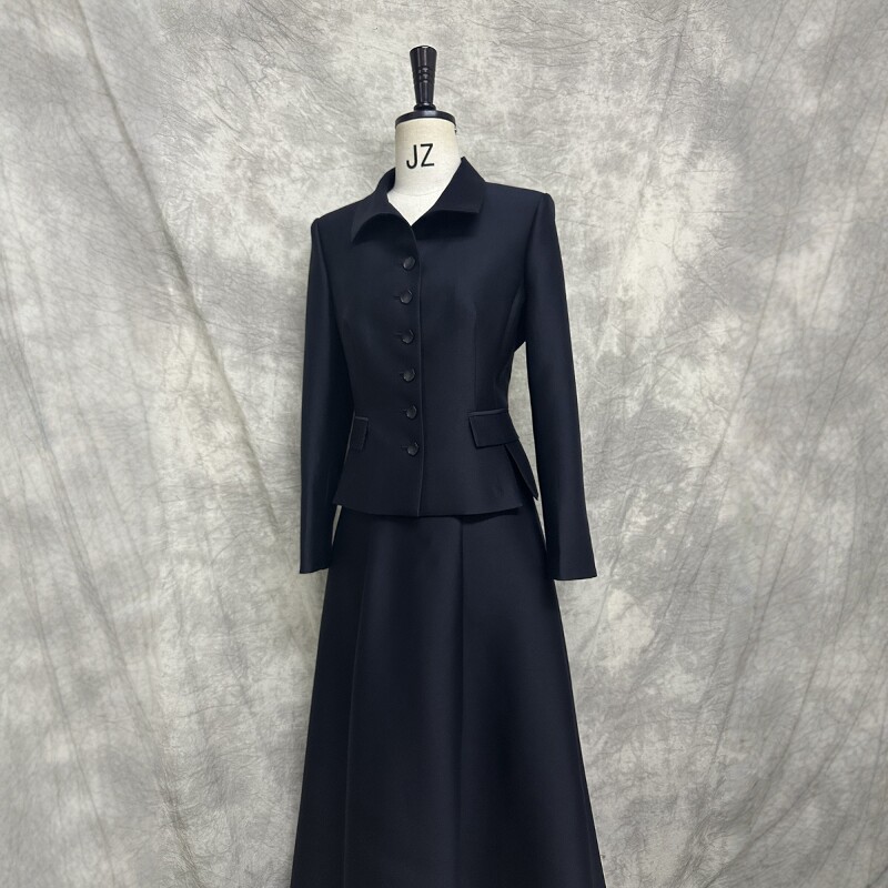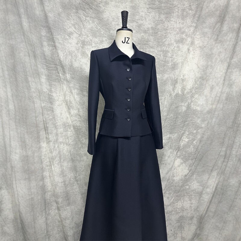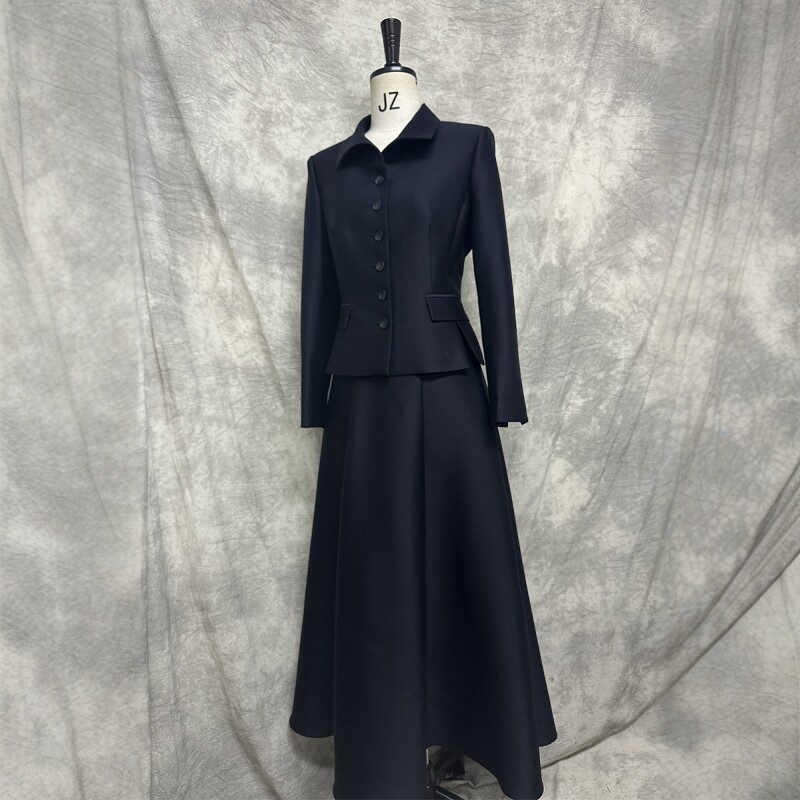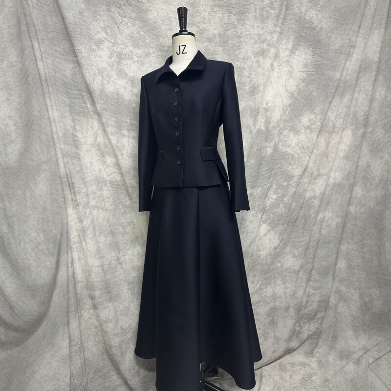 显瘦职业商务大牌OL 裙女修身 高级定制2024春秋藏青色丝毛西装 套装