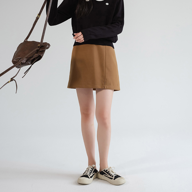 大码 高腰羊毛呢料百褶裙女防走光a字短裙加厚显瘦学院风半身裙