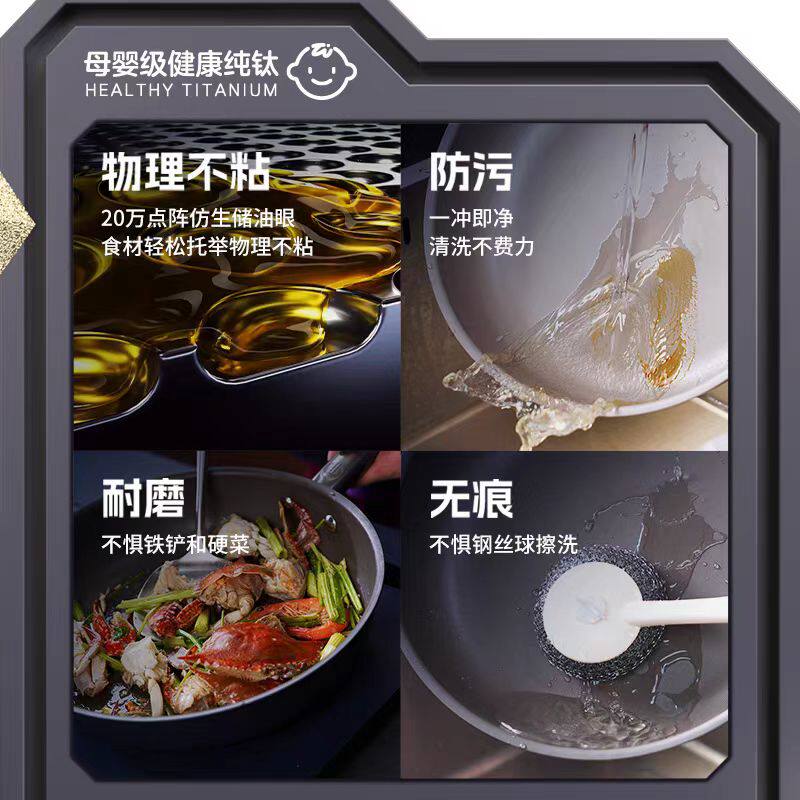 无涂层不粘锅家用炒锅轻量炒菜锅平底珐琅钛锅电磁炉燃气灶通用H