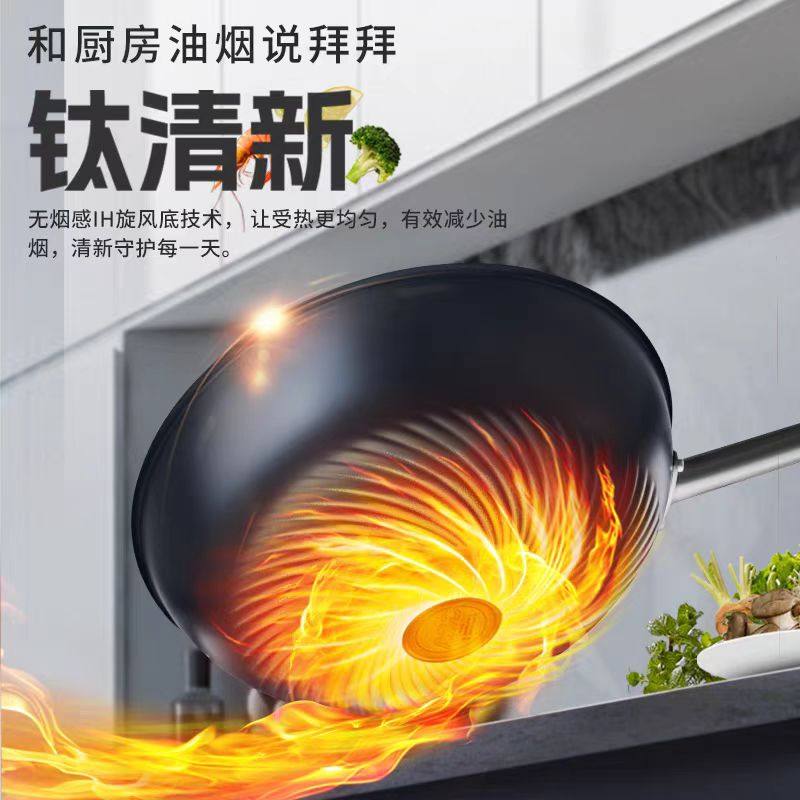 真钛0涂层炒锅无涂层家用不粘锅不锈钢炒菜锅 康巴赫Pro版 新品