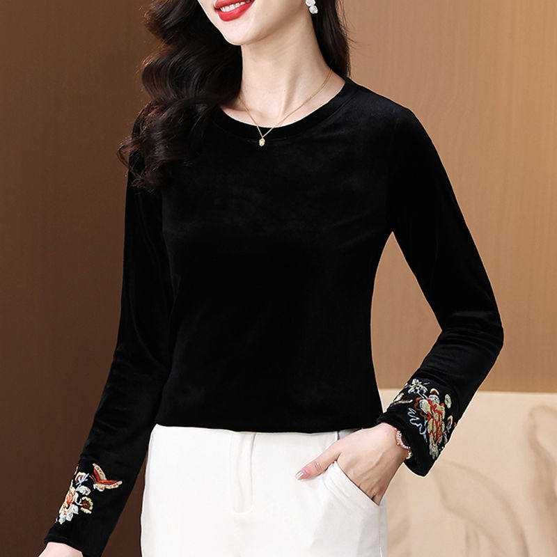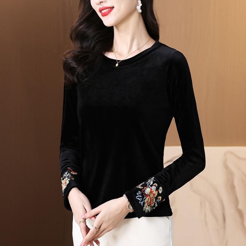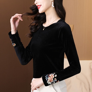 高级感刺绣小衫 2026秋冬新款 轻国风金丝绒上衣内搭外穿女装 新中式
