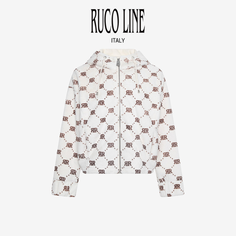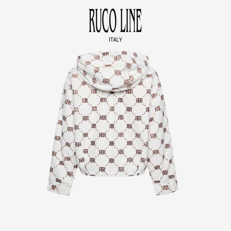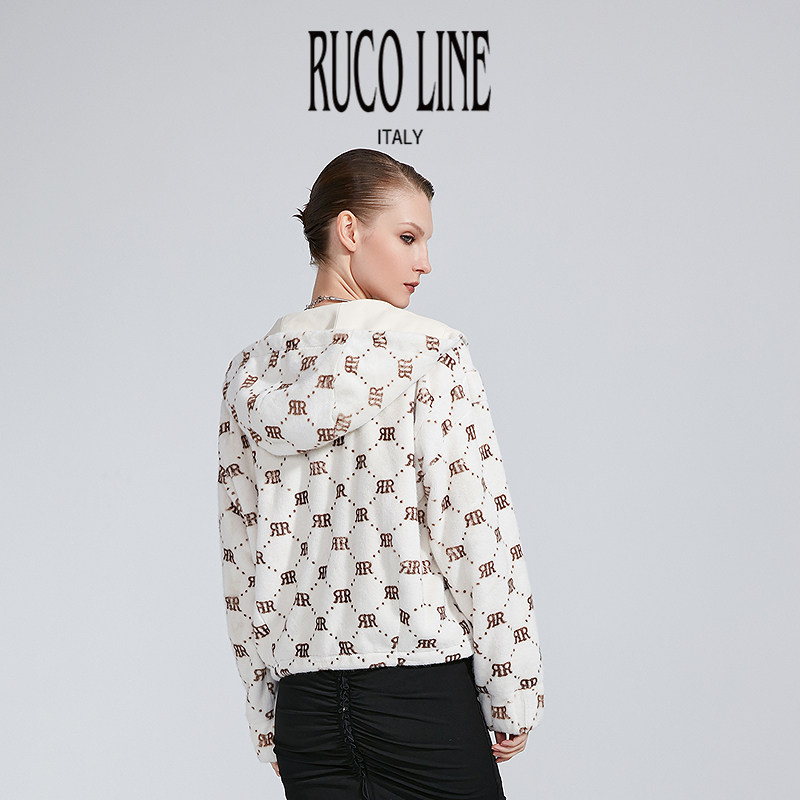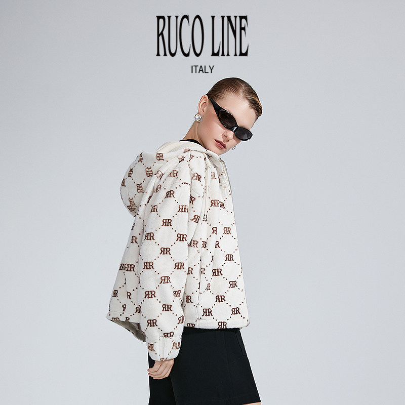 Ruco Line如卡莱气质高级毛绒宽松外套女士连帽商场同款