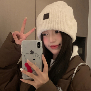 秋冬大头围针织毛线帽子女加厚保暖显脸小护耳帽韩版 百搭包头冷帽