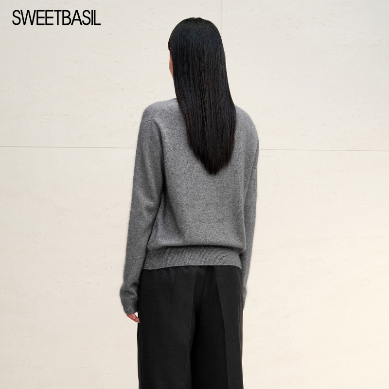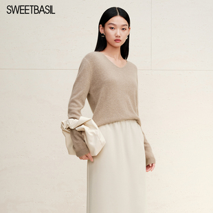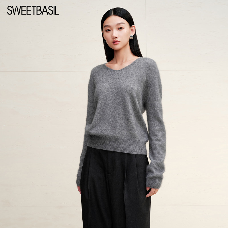 女2024秋新款 Sweet 纯色V领毛针织衫 紫淑商场同款 内搭上衣 Basil