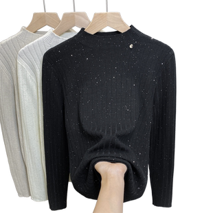 内搭洋气上衣 套头外穿针织衫 亮片半高领毛衣女打底衫 2025秋冬新款