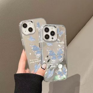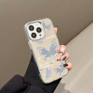 镜面星星蓝蝴蝶适用三星s24fe手机壳硅胶s23ultra新款 创意s21镜子note20保护套a15a55a54a34防摔a24a35 s22
