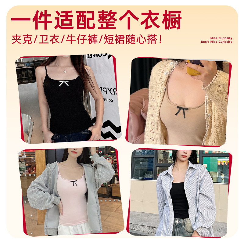 好奇蜜斯羊毛保暖背心吊带抗静电带胸垫秋衣打底衣肌底衣发热加绒