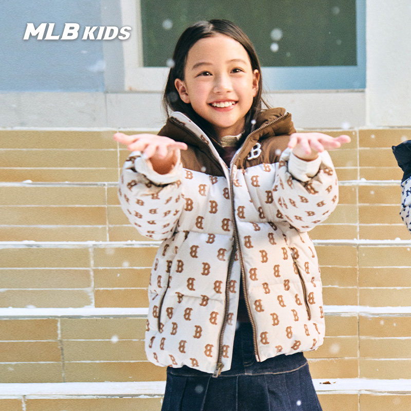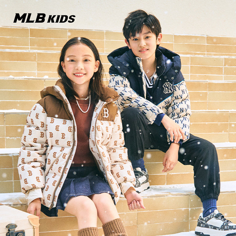 连帽鹅绒太妃糖羽绒服秋冬款 MLB儿童官方男女童经典 老花时尚
