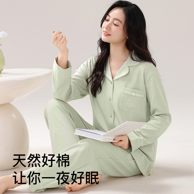 家居服套装 莫代尔纯棉睡衣女士春秋季 2026年新款 全棉开衫 简约长袖