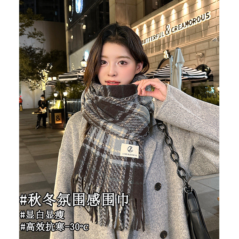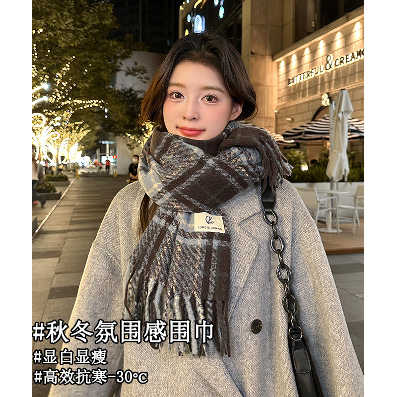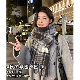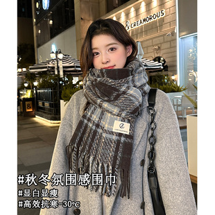 围巾女款 冬加厚韩系氛围感学院风高级感学生格子女士围脖 2025新款