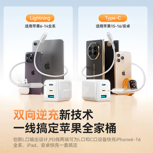 PDlightning三口插头typec30W 机乐堂充电头适用苹果17充电器iPhone16手机14pro快充15套装 iPhone17上新