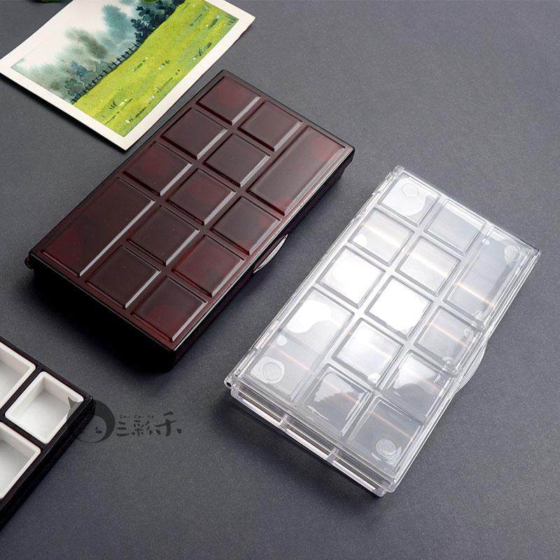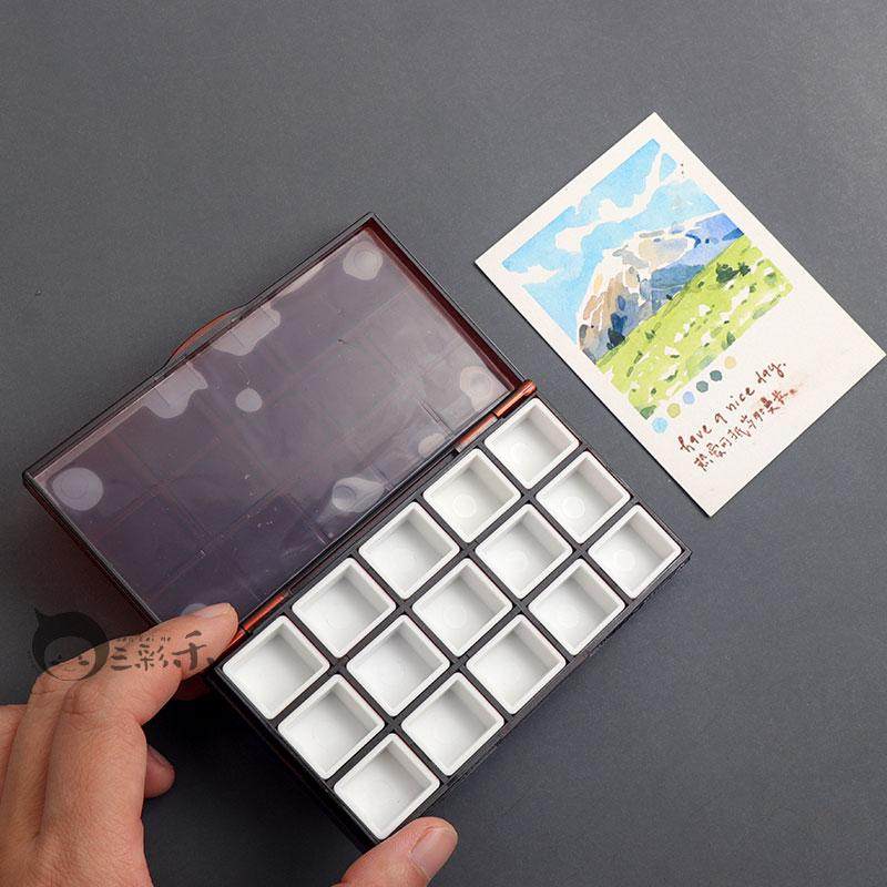 空盒小格子 12色涂色固体透明分装 迷你便携水彩颜料套装 旅行亚克力盒随身手账本写生绘画画本调色小画板套装