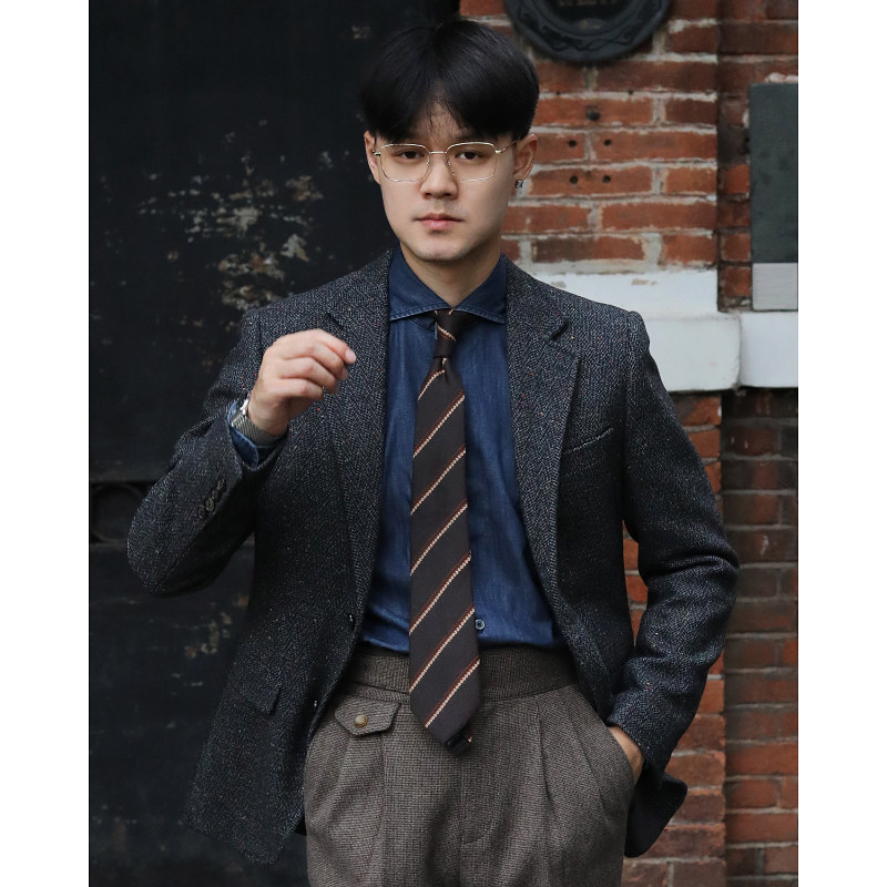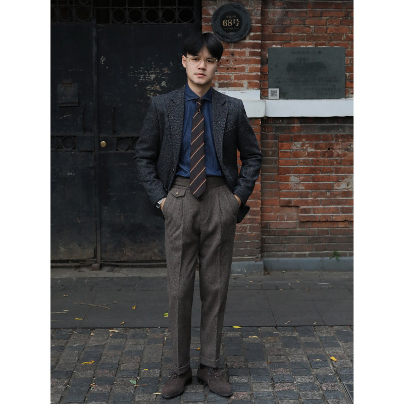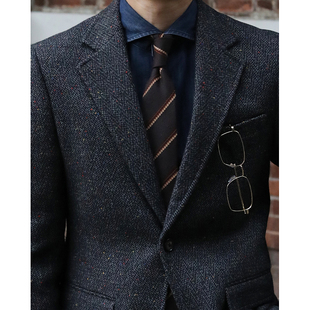 外套 单西装 英伦复古雅痞黑灰色羊毛粗花呢秋冬厚款 人字纹休闲修身