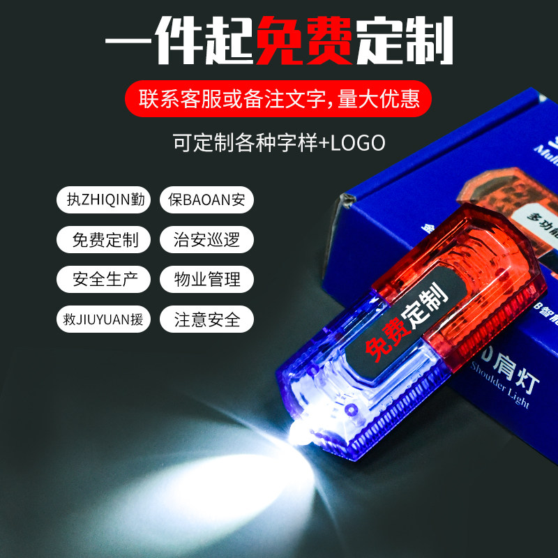 肩灯爆闪灯警示闪光灯红蓝LED充电肩夹闪烁灯夜间巡逻代驾信号灯