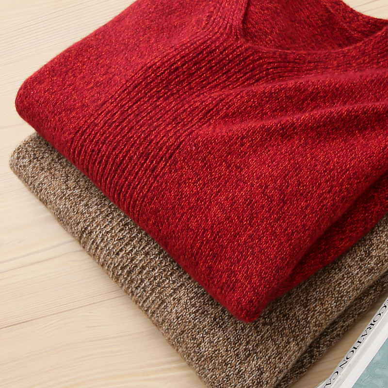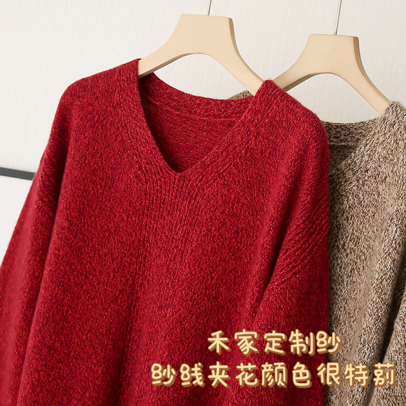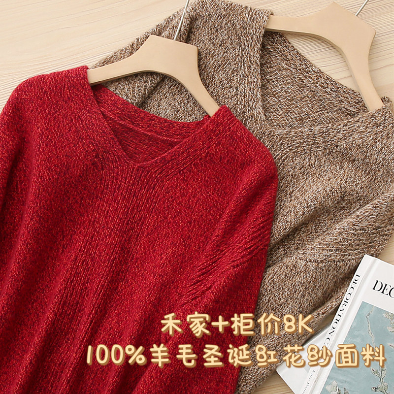 超美圣诞红V领套头衫 禾 非常好 羊毛做出羊绒手感 女 定制纱
