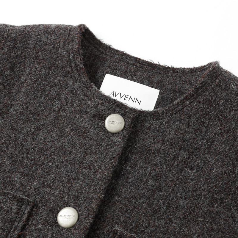 AVVENN多色纱线混纺绵密蓬松圆领毛呢外套AM90110823