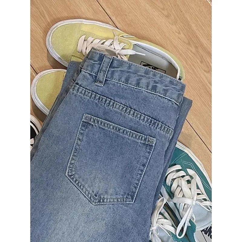 小个子加绒加厚宽松显瘦阔腿长裤 xs码 女秋冬季 韩系复古直筒牛仔裤
