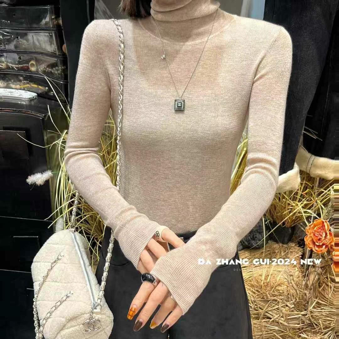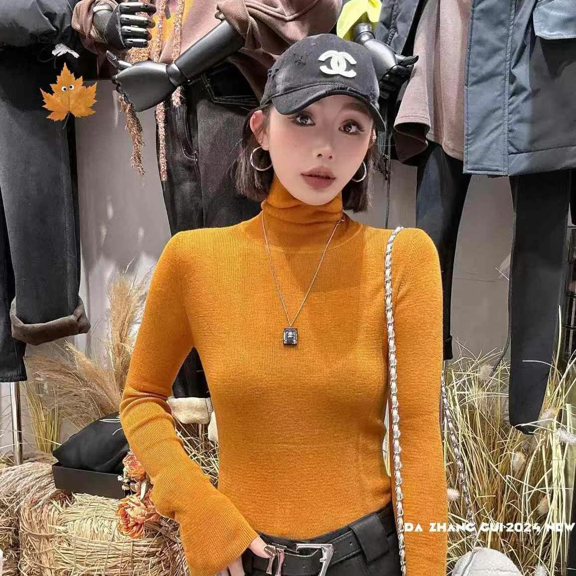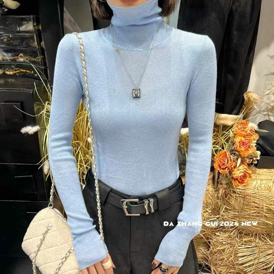 t恤长袖 高级感针织内搭修身 上衣 女秋冬24新款 打底神奇高领打底衫