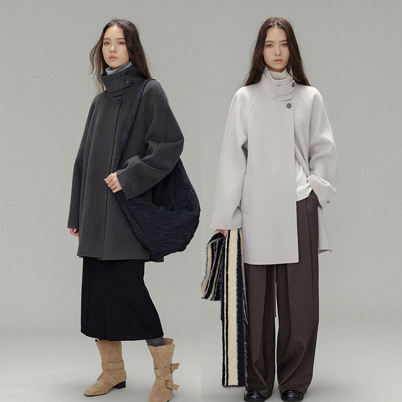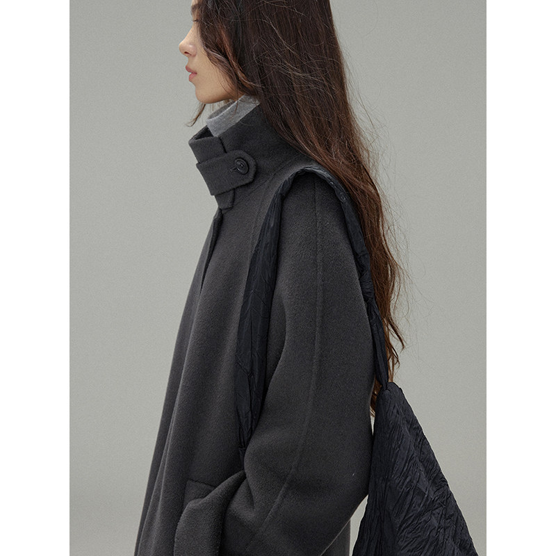 100羊毛慵懒风双面毛呢大衣宽松呢子风衣外套小个子 到手799元