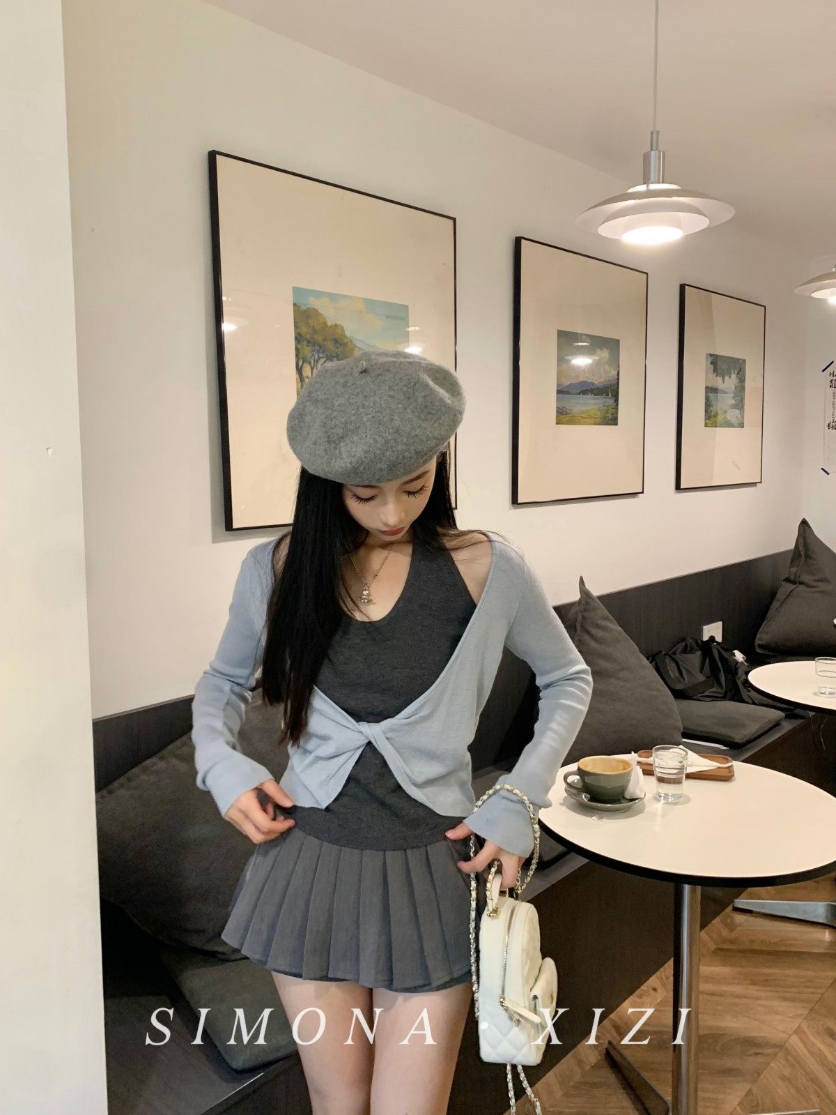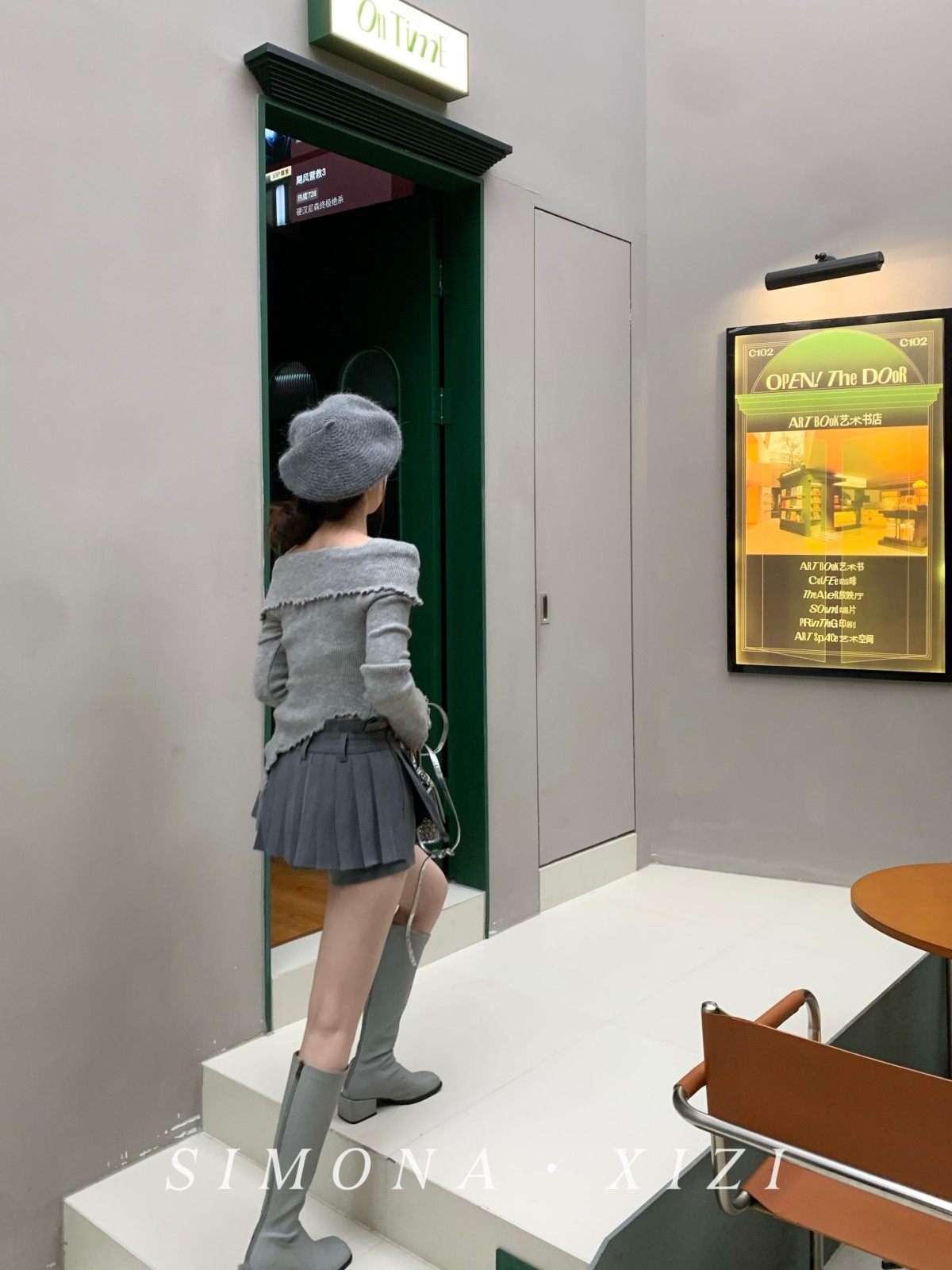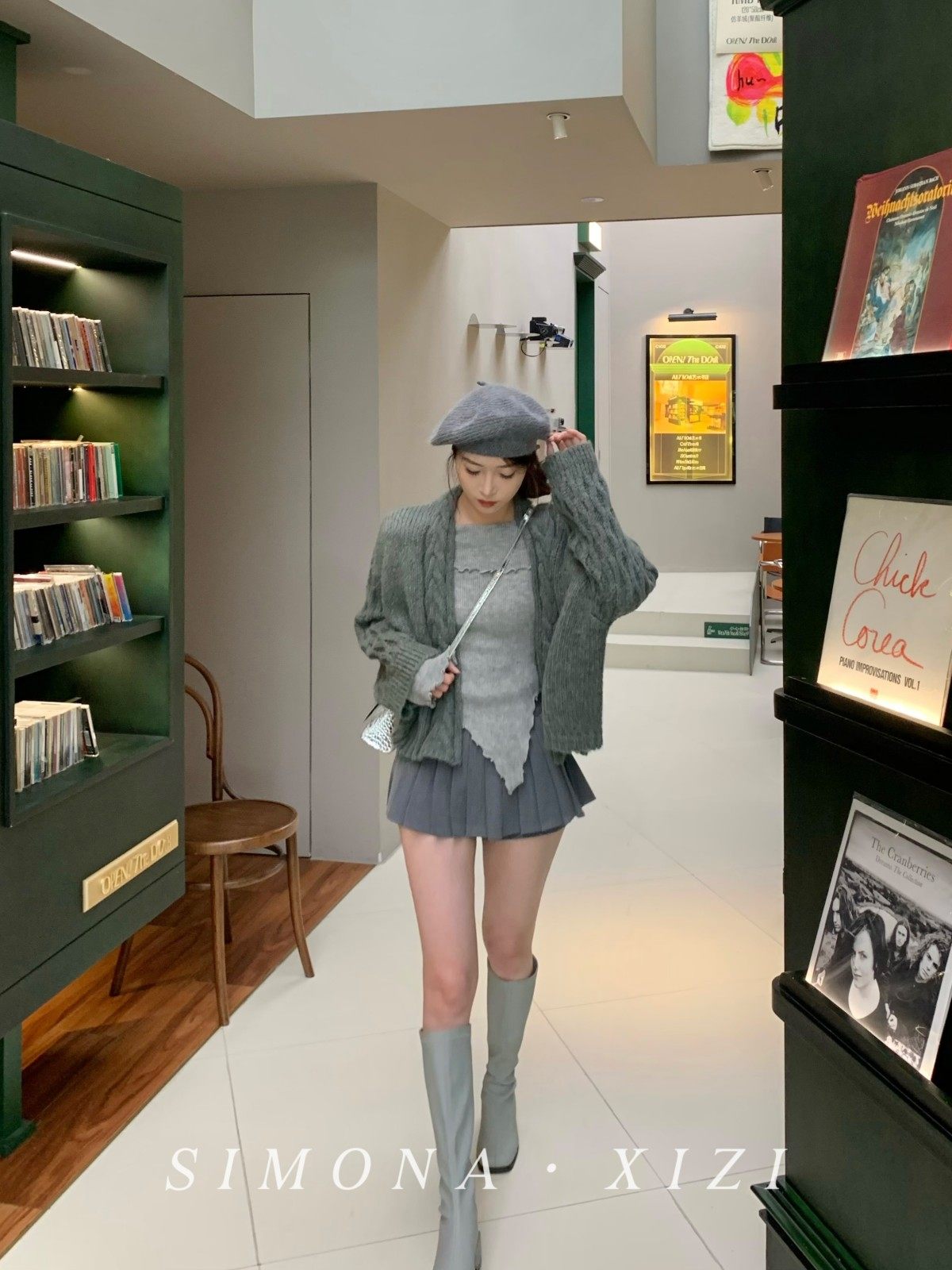 SIMONA24新款 温柔甜灰色百褶裙短裙A字显瘦百搭显腿长 秋日小调