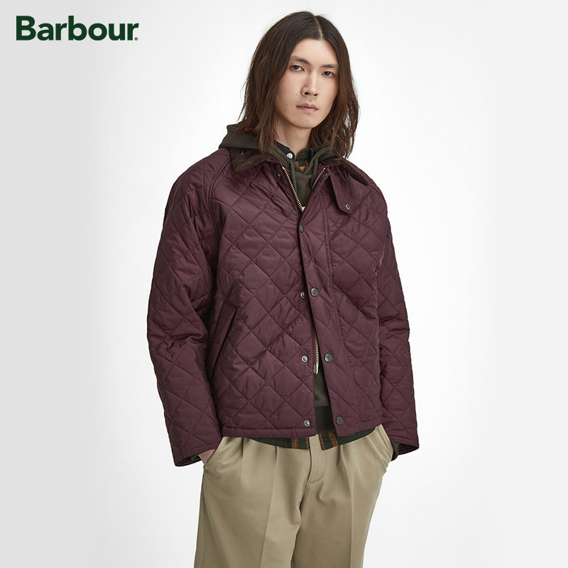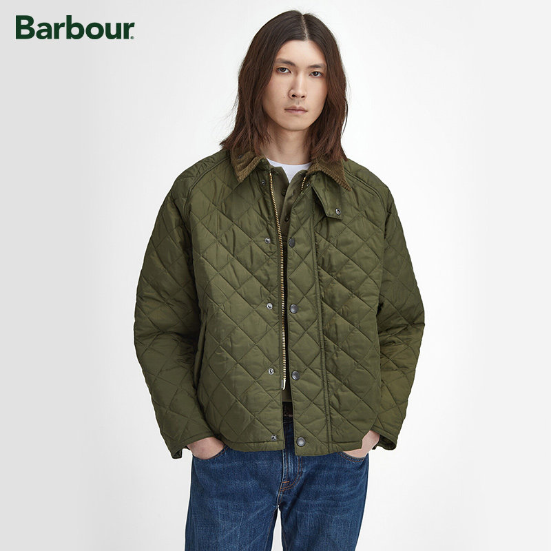 复古菱形格夹棉外套200斤 女装 胖mm冬季 巴恩翻领棉服木子理想大码