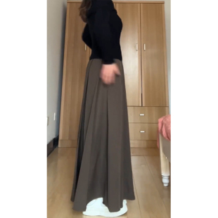 胖mm显瘦遮肚裙子a字垂感百褶伯克利长裙 女大码 棕色半身裙春季 款