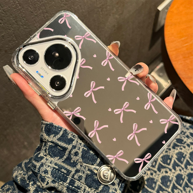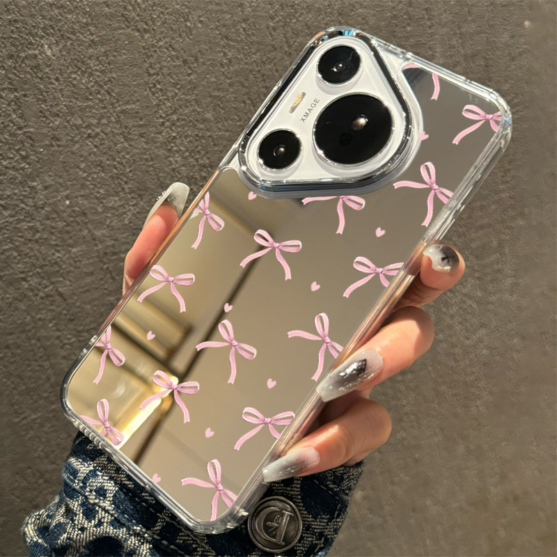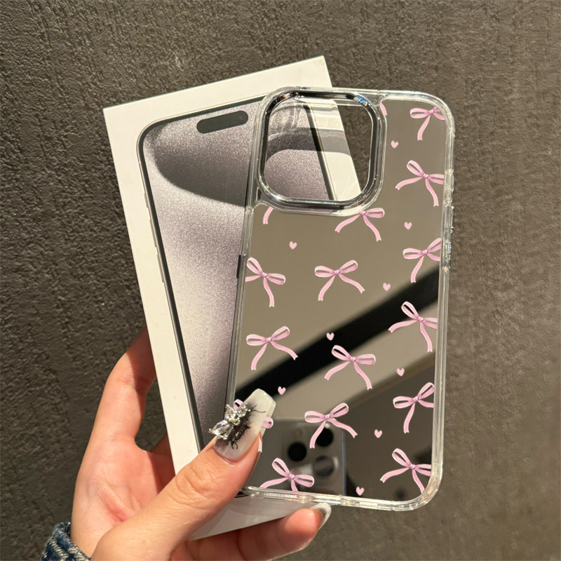 粉色少女心镜面适用苹果17手机壳新款 iphone16promax轻奢化妆补妆镜子13蝴蝶结1211全包14pro原创xsmax个性